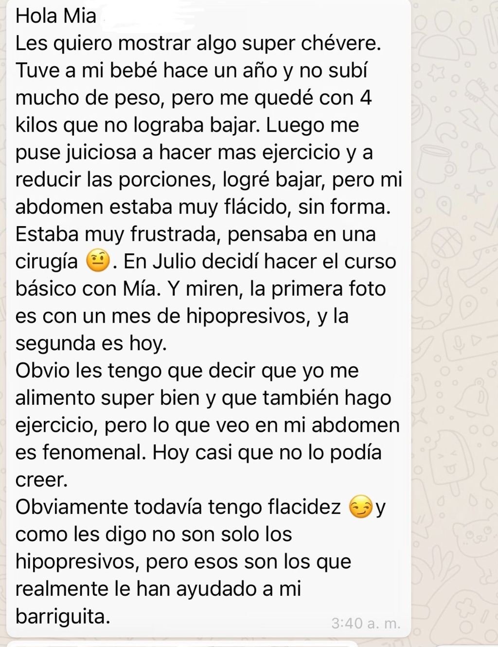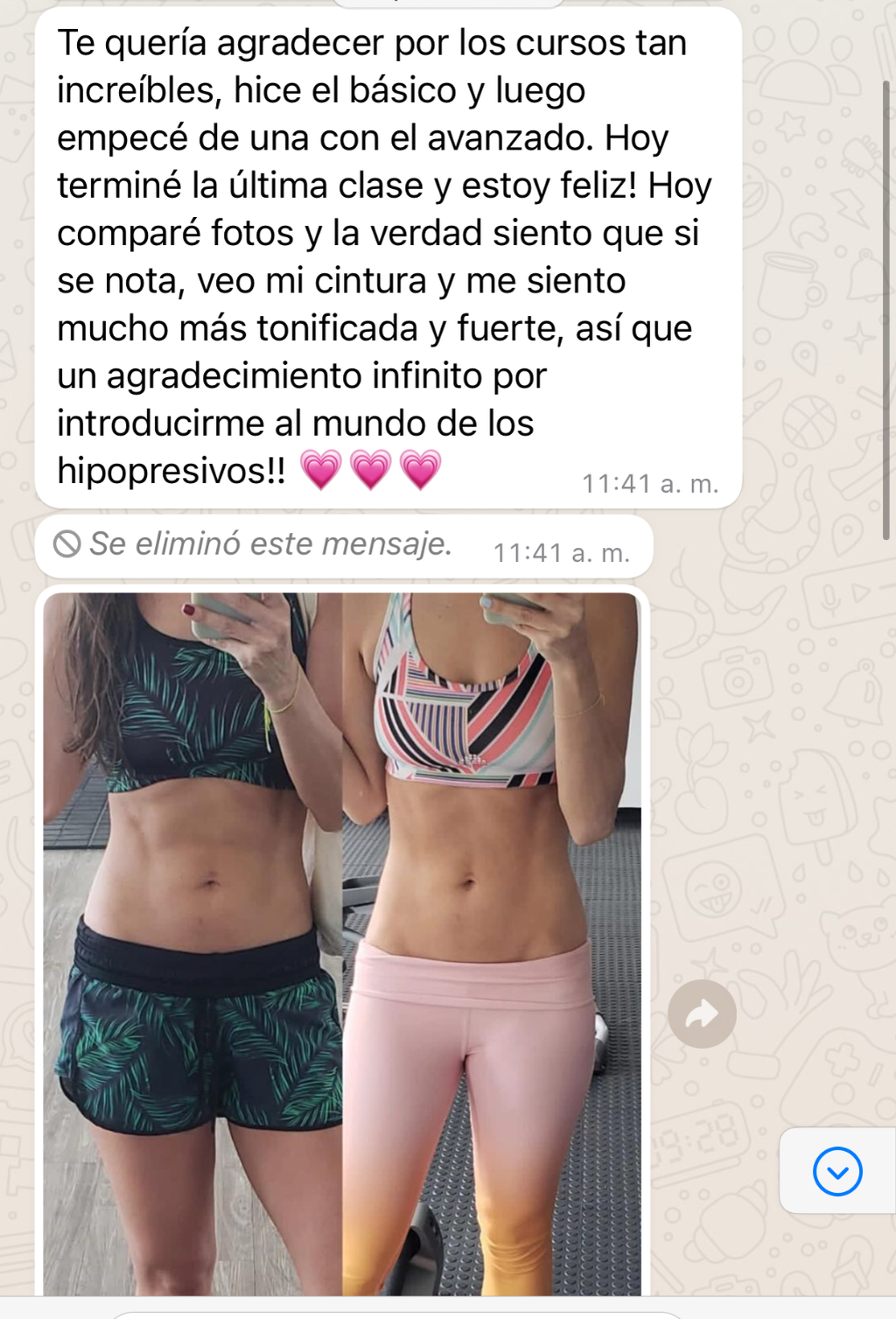 Durante los últimos años, he tenido el privilegio de entrenar a más de 20.000 mujeres, ayudándolas a fortalecer, aplanar y definir su abdomen. Mi enfoque no solo se centra en los resultados físicos, sino también en inspirar motivación y amor propio para que cada mujer pueda alcanzar su mejor versión.